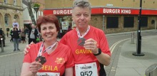 However, a few hardy souls faced the hours less sleep with considerable fortitude and took part in some longer runs. Gavin and Sheila Malloch (pictured) traveled to Somerset to take part in the hilly Yeovil Half Marathon, finishing in 2hrs 7mins 9secs and 2hrs 30mins 34secs respectively.